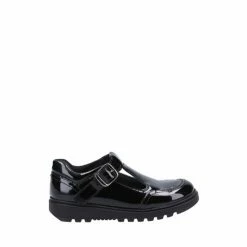 Classic Girls Back to School shoe from Hush Puppies – Kerry has the iconic Fit Left Fit Right fitting system, premium leather uppers in a T-Bar buckle style with a padded collar for extra comfort and Micro-Fresh lining. Smart patent leather upper. Fit Left Fit Right – unique fitting system allows for five different width fittings for each individual foot. Every pair of shoes comes with three pairs of footbeds. Micro-Fresh lining keeps feet dry and fresh. Buckle fastening. T-Bar style. Chunky sole.