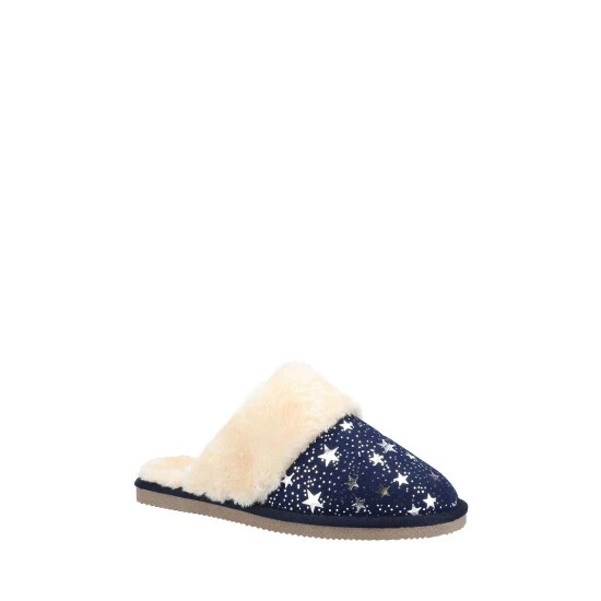 Sparkly slip on slipper; The Arianna star slipper is crafted with a cosy faux fur sock lining and a memory foam comfort insole to keep feet warm and cosy. Finished off with a fun metallic star print for added sparkle. Featuring faux fur sock lining fun metallic star print and memory foam comfort insole.